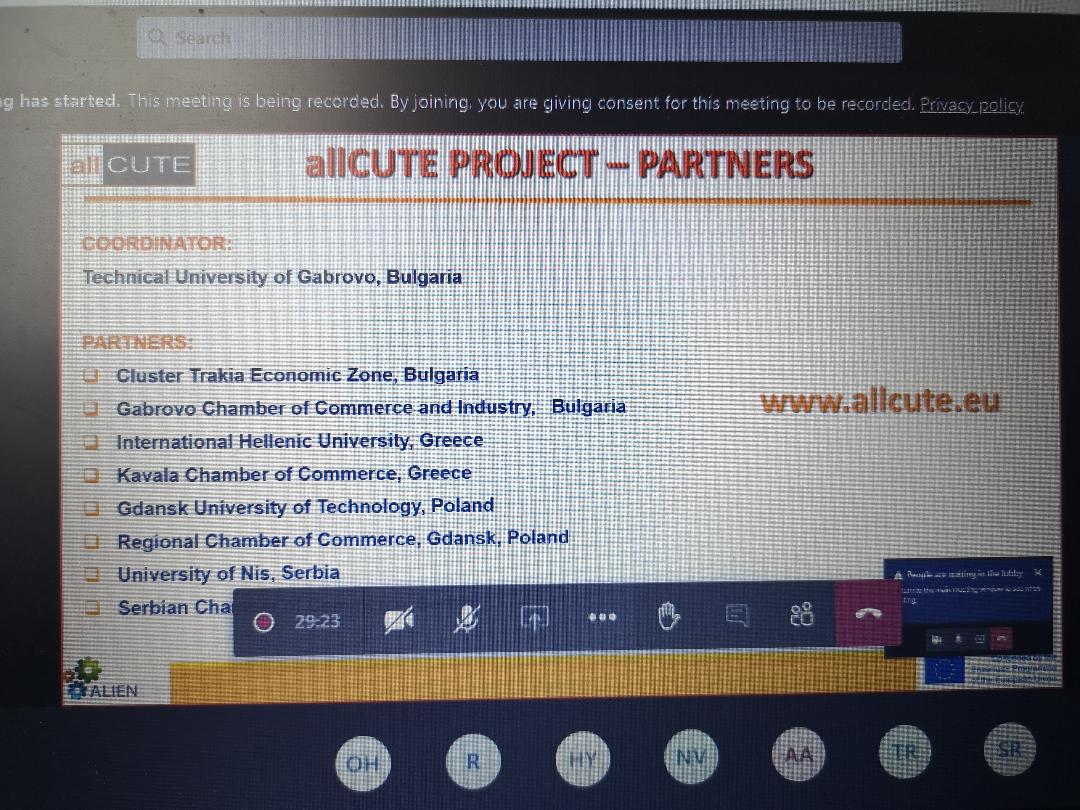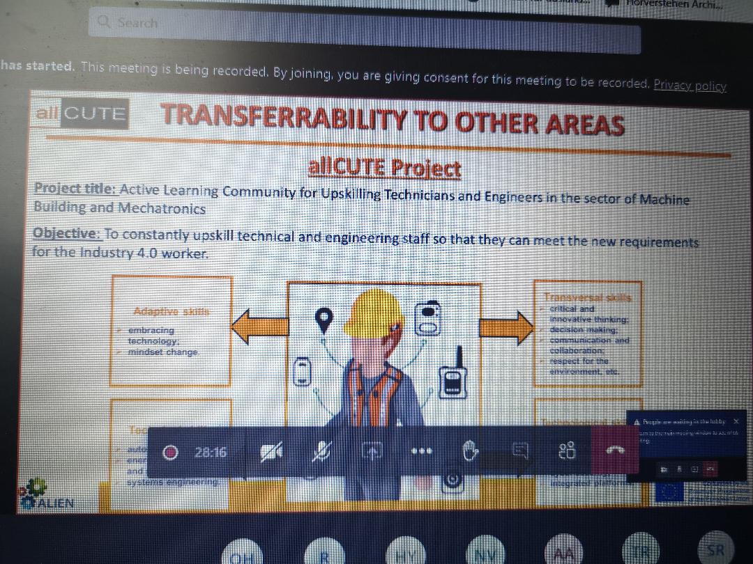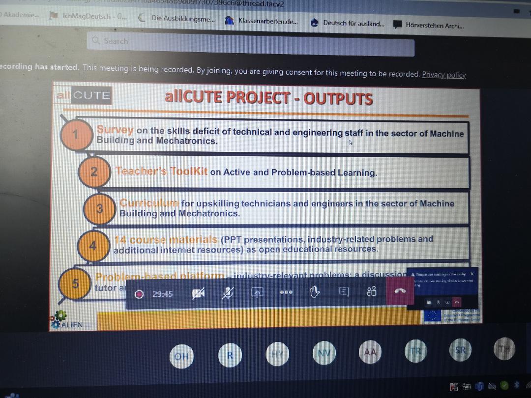 On 26th March 2021 Irena Rashkova (Project Coordinator) delivered a webinar on Active Learning. The audience were university teachers from 5 European countries (Bulgaria, Greece, Lithuania, Portugal and the UK) and 5 Asian countries (Cambodia, Malaysia, Nepal, Pakistan and Vietnam). Irena Rashkova presented allCUTE project as a best practice at the Technical University of Gabrovo. She also focused on the results of the Survey related to the TVET needs of technicians and engineers employed in the sector of Machine Building and Mechatronics, where she pointed out the attitude of different types of companies to active learning and the skills demanded by employers today.
